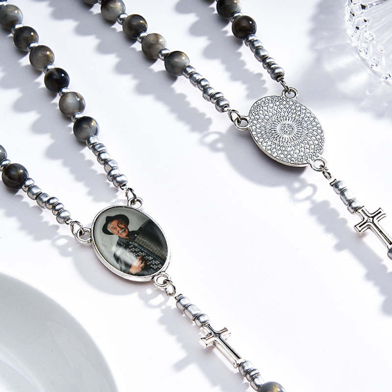 Benutzerdefinierte Rosenkranz-kreuz-halskette, Personalisierte Kreuz-halskette Mit Foto