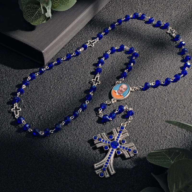 Collana Con Croce Di Perline Rosario Personalizzata Collana Con Perline Blu Gotiche Personalizzate Con Foto