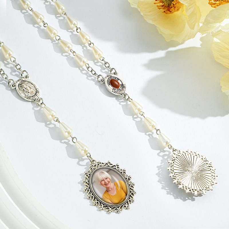 Collana Con Croce Di Perline Di Rosario Personalizzata Collana In Stile Perla Personalizzata Con Foto