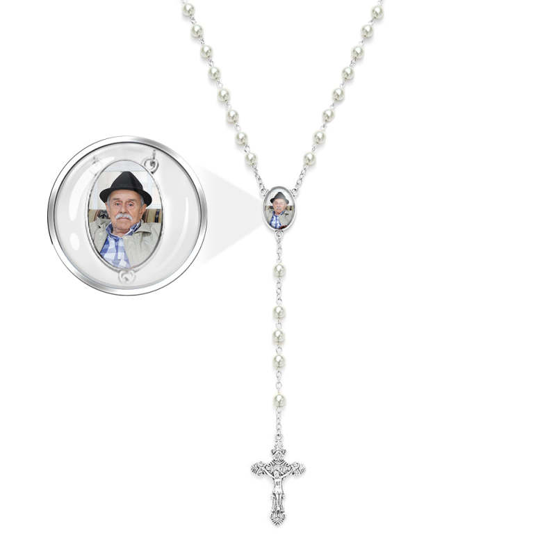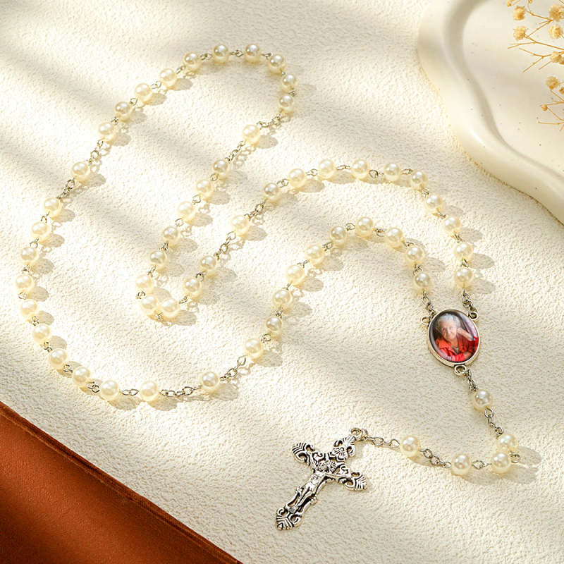 Collana Con Croce Di Perline Di Rosario Personalizzata Collana Di Perle Finte Bianche Personalizzata Con Foto