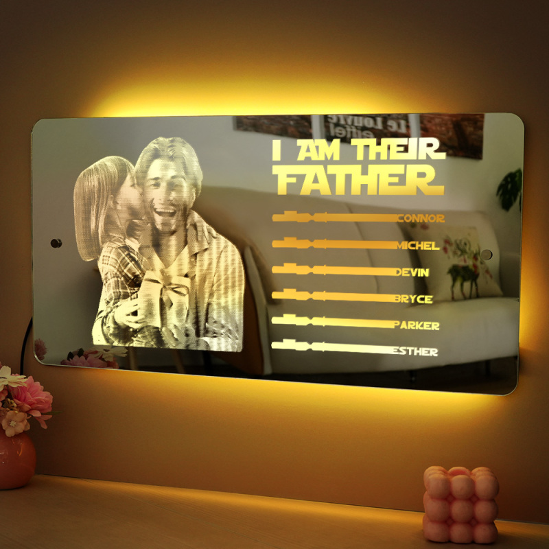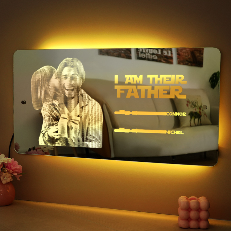 Targa A Specchio Saber Personalizzata, Con Nome Personalizzato, Luce Led Multicolore, Regalo Personalizzato Per La Festa Del Papà 'sono Il Loro Padre'