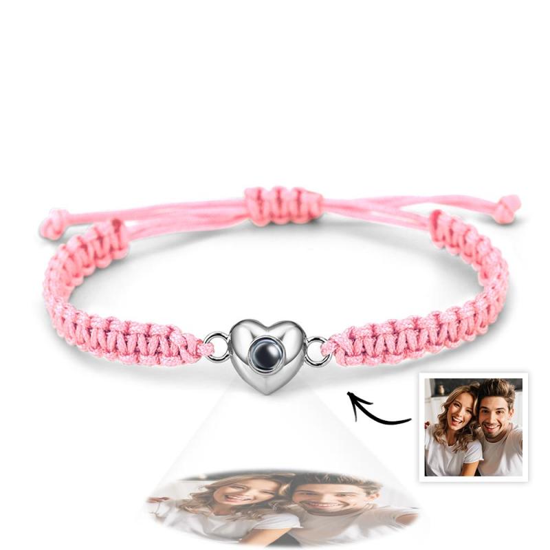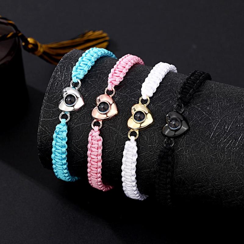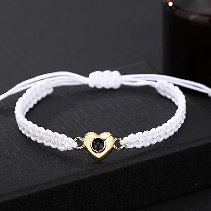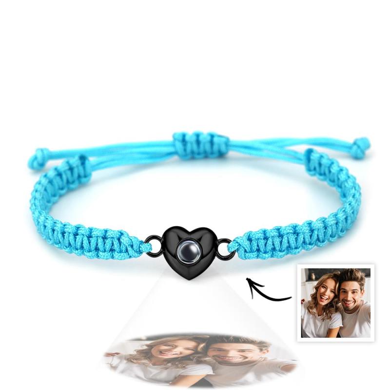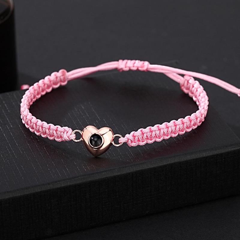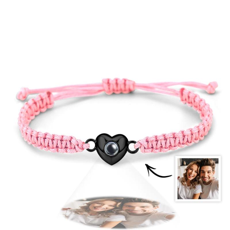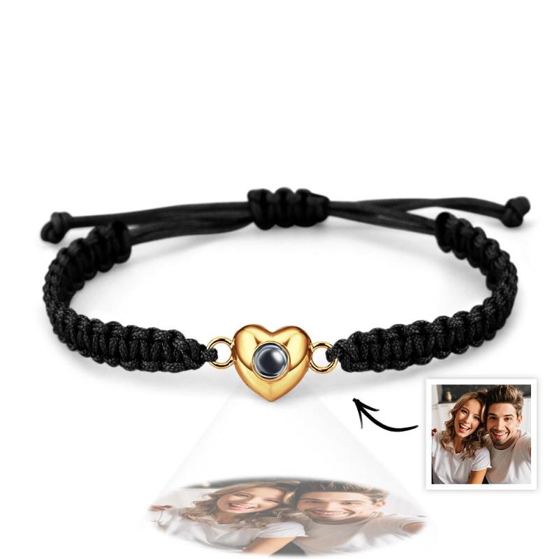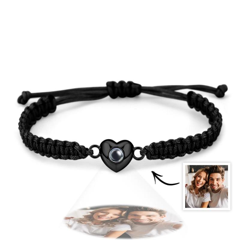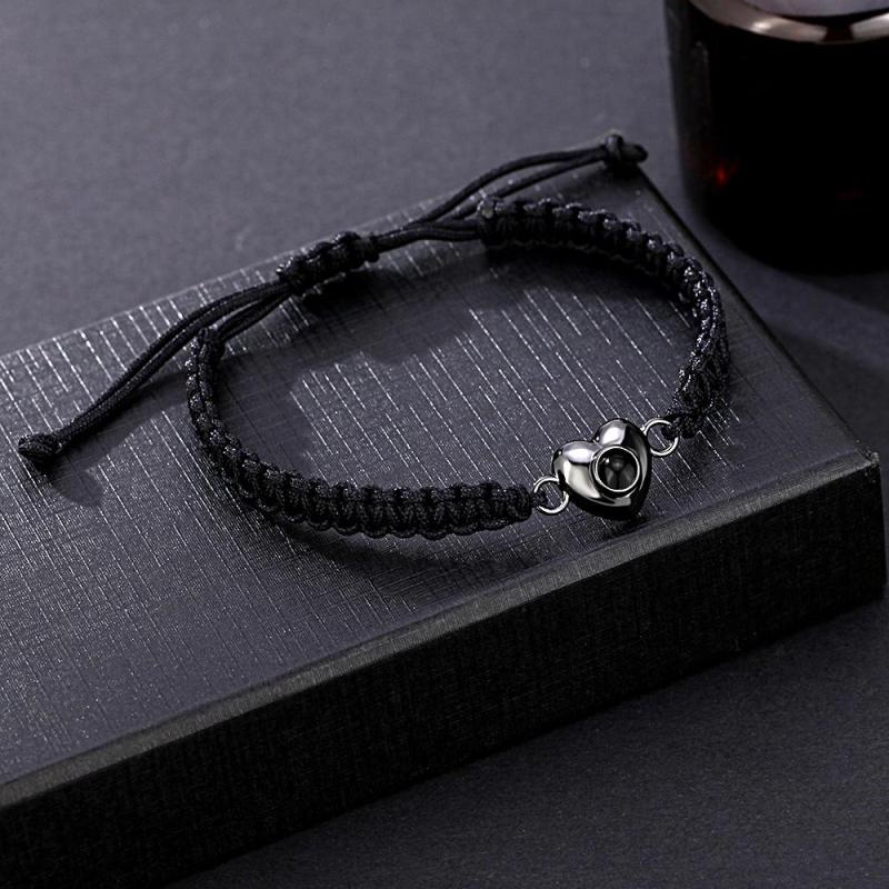 Bracciale Per Proiezione Di Immagini A Forma Di Cuore In Corda Nera Semplice E Personalizzato
