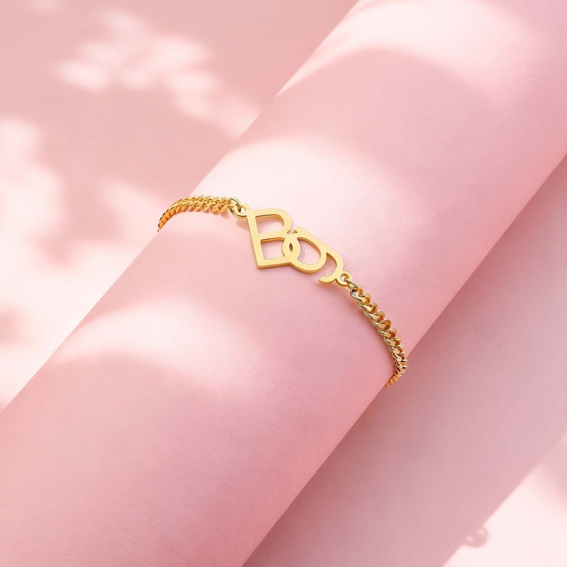 Questi splendidi bracciali presentano due iniziali intrecciate su una sottile catena barbazzale, personalizzate con ciondoli a forma di lettera. Un regalo premuroso per le migliori amiche, le madri, le figlie o chiunque ti sia caro.