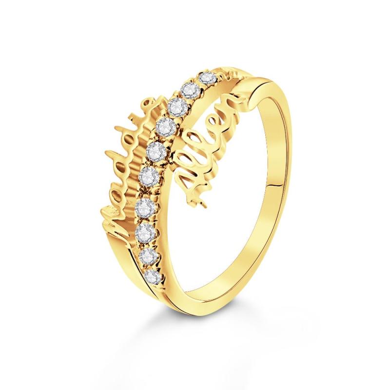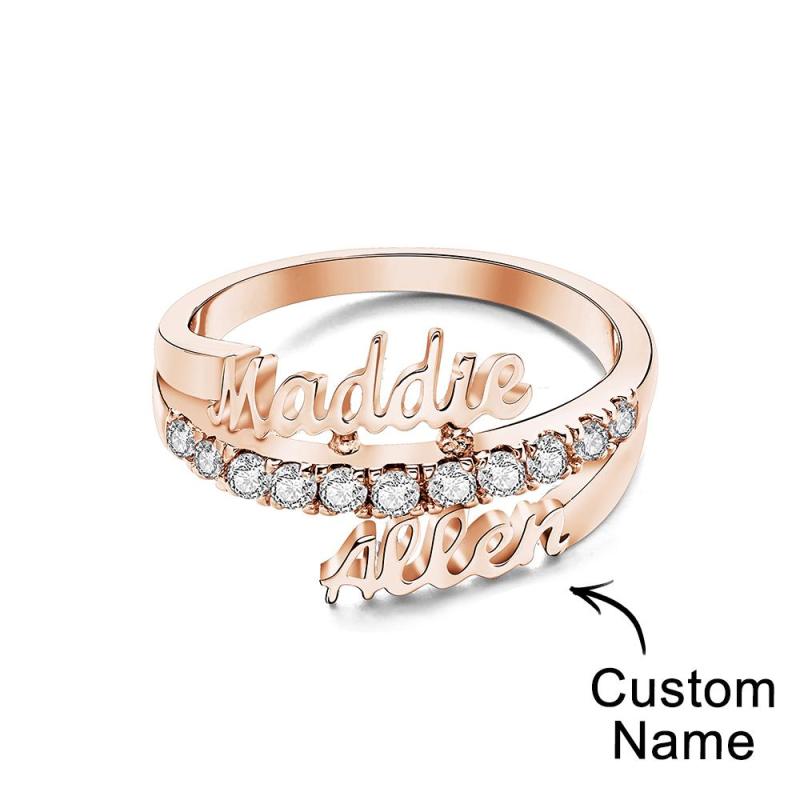 Questo sorprendente anello con doppio nome è il regalo perfetto per coppie, madri e figlie. Realizzato in oro e argento, è disponibile in tre opzioni placcate in colori per garantire la perfetta vestibilità. La dimensione dell'anello è regolabile da US 7-13. Mostra alla tua persona speciale quanto significa per te con questo gioiello speciale.