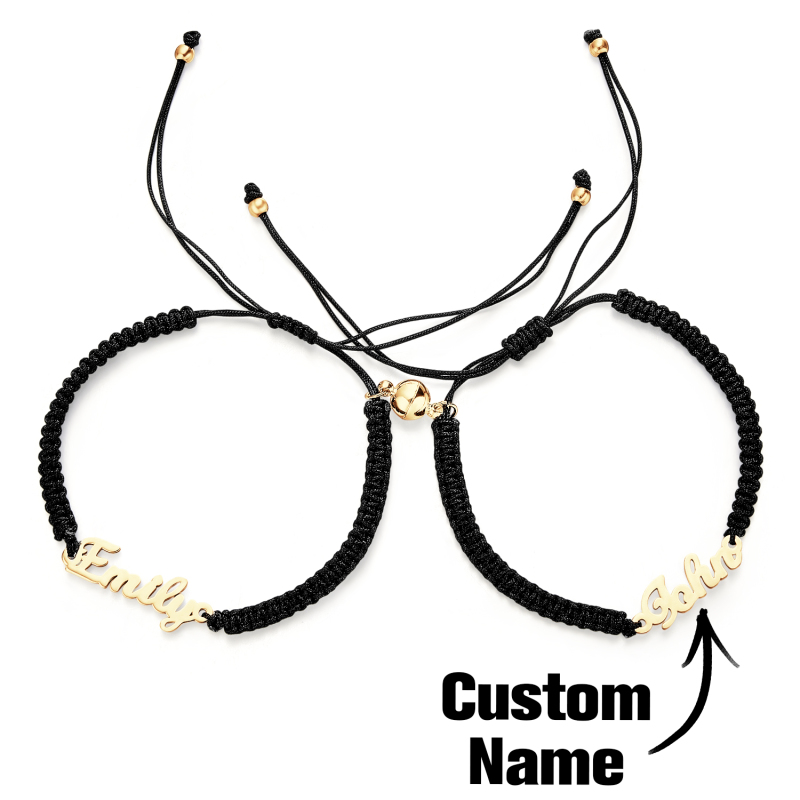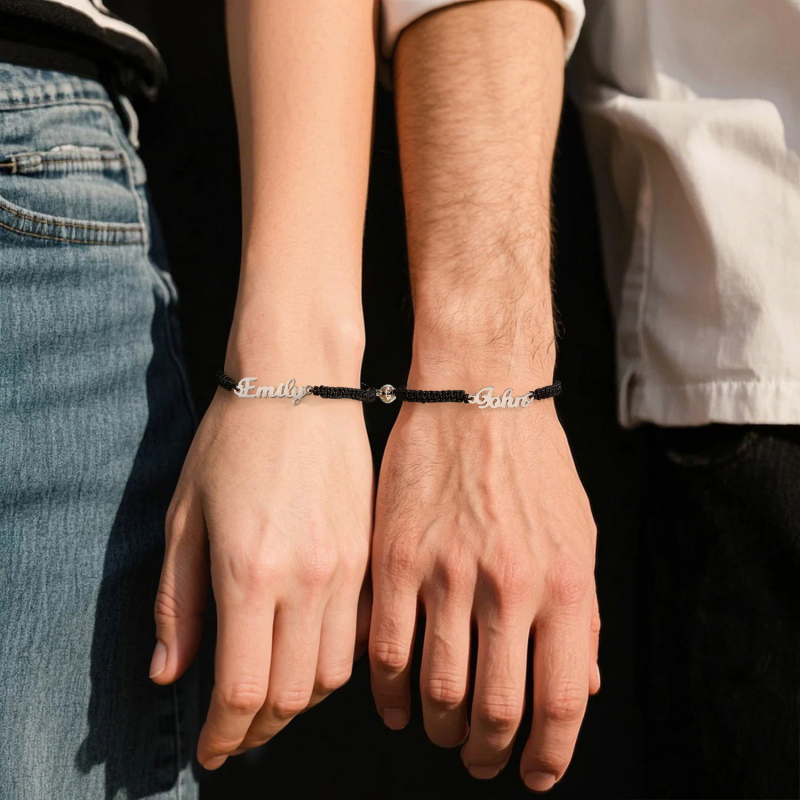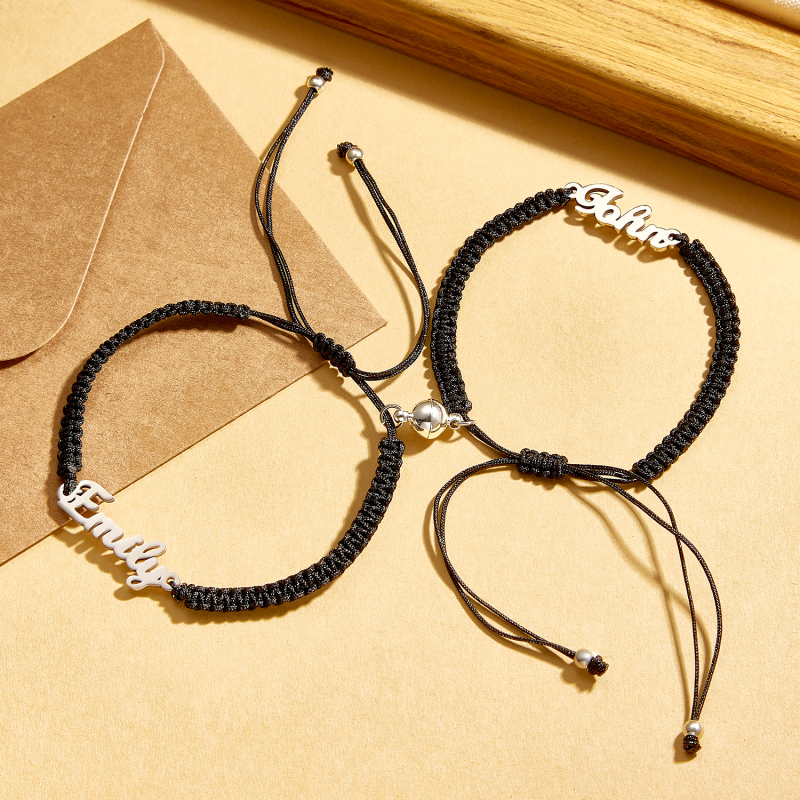 Esprimi il tuo amore e il tuo impegno con il nostro elegante braccialetto personalizzato con nome intrecciato e design magnetico per coppie. Questo braccialetto personalizzato è appositamente realizzato per simboleggiare il legame indissolubile tra le coppie. Realizzato con materiali di alta qualità, presenta un elegante motivo intrecciato che offre resistenza e un look moderno. Il braccialetto può essere personalizzato con i tuoi nomi o con parole speciali, rendendolo un pezzo davvero unico che riecheggia la tua storia personale.