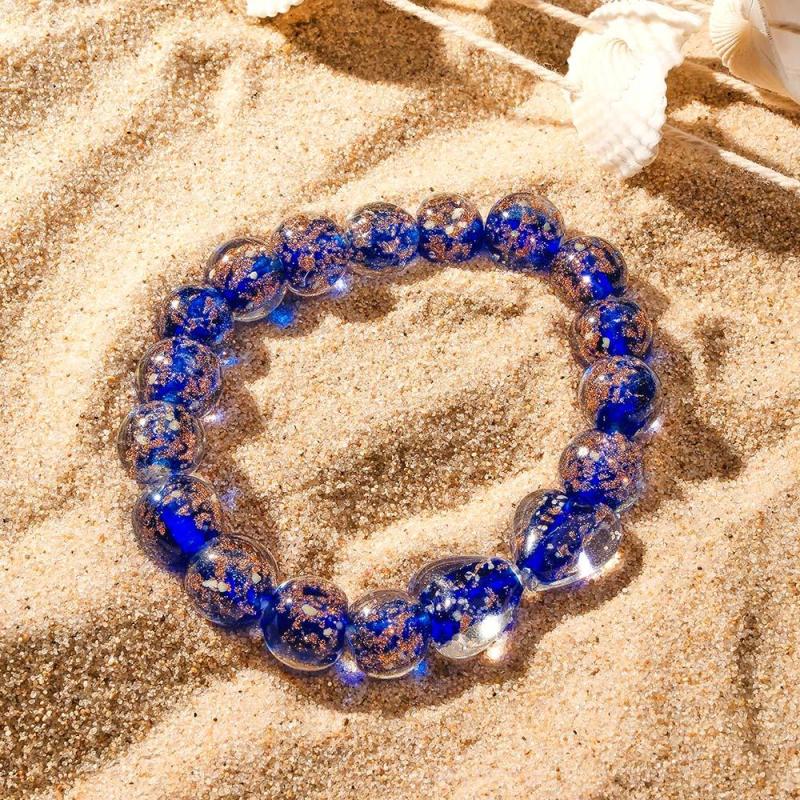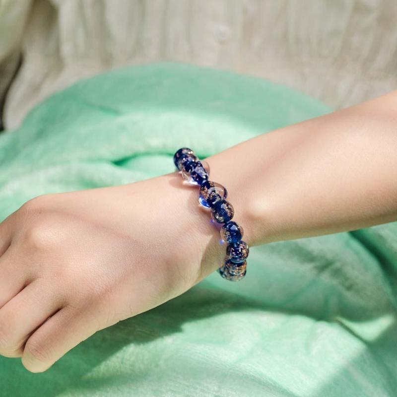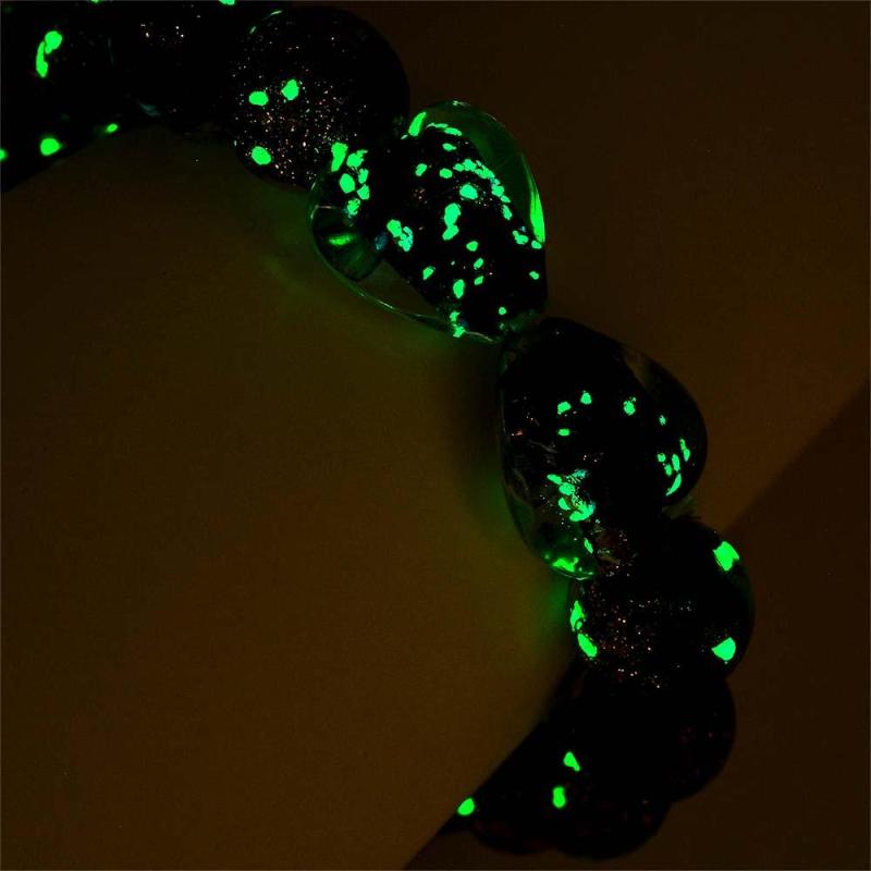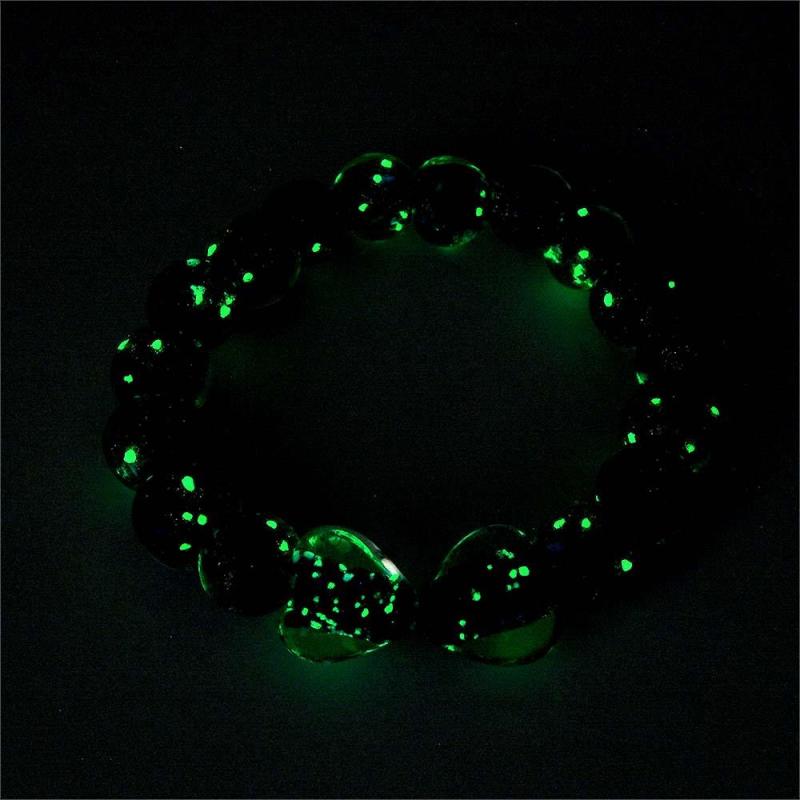 Bracciale Con Perline Elasticizzate In Vetro Lucciola Cuore A Cuore Blu Scuro. Bracciale Luminoso Che Si Illumina Al Buio