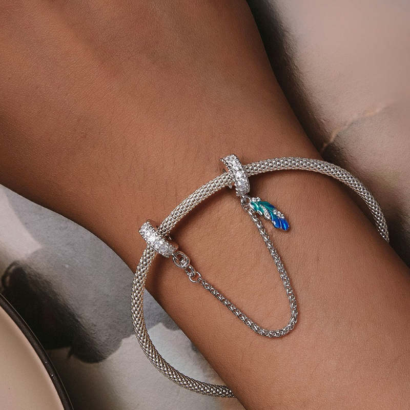 Cadena Charm Seguridad Plumas Delicadas Plata