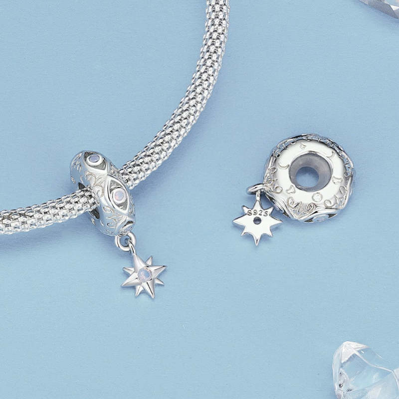 Dije con tapón de estrella y ojo de demonio Dije espaciador en plata