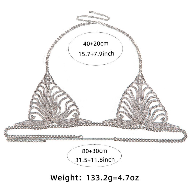 Esalta il tuo stile con un set che irradia brillantezza. Realizzato con scintillanti strass che brillano a ogni movimento, completato da delicati dettagli in catena per un tocco discreto e seducente. Progettato per farti brillare, brillare e catturare l'attenzione, perché niente dovrebbe oscurarti.