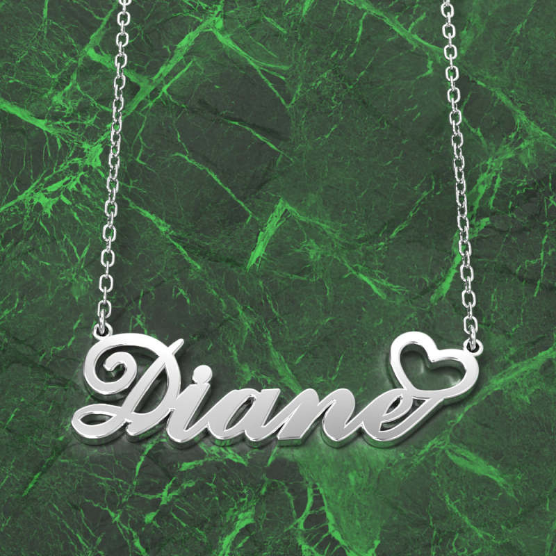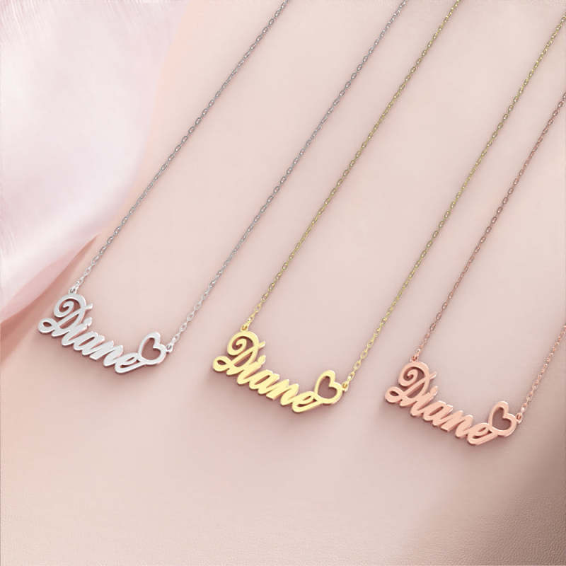 Diane Collana Con Nome Argento Placcato Oro Rosa Collana Personalizzata Con Cuore, Regali Personalizzati Per Lei