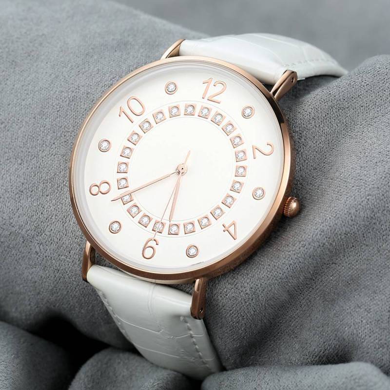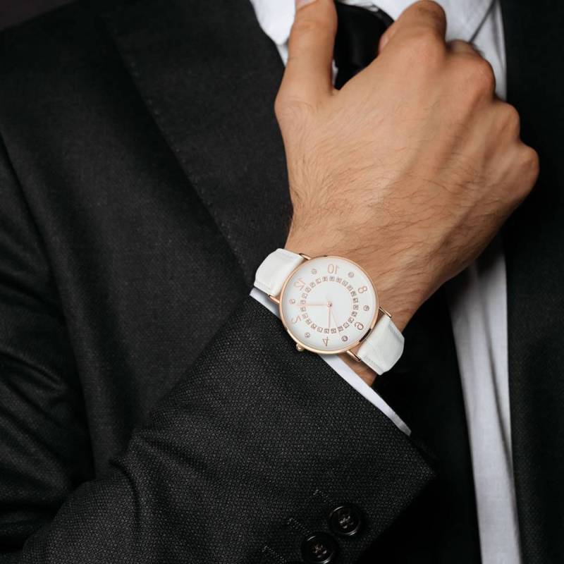 Quadrante Digitale Quadrante Bianco Orologio Al Quarzo Con Cinturino In Pelle Bianco - Uomo