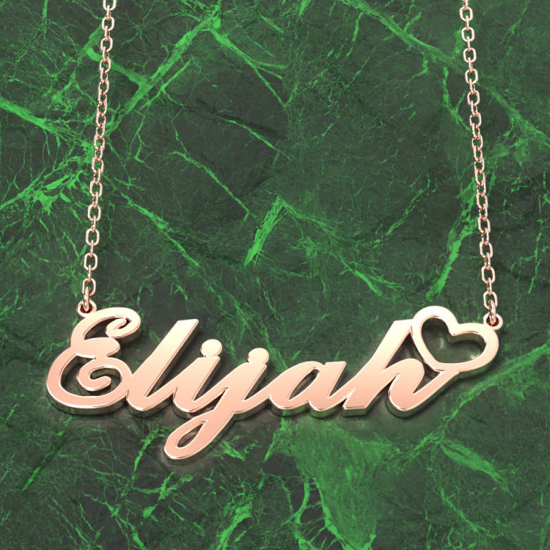 Elijah Collana Con Nome Argento Placcato Oro Rosa Collana Personalizzata Con Cuore, Regali Personalizzati Per Lei