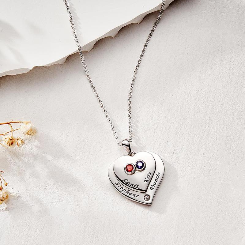 Collana Con Doppi Cuori Incidibili Con Pietra Portafortuna, Bellissimi Gioielli Da Regalare Per Lei
