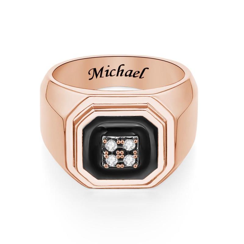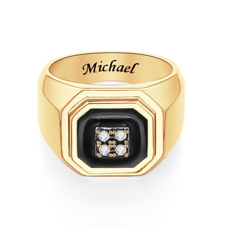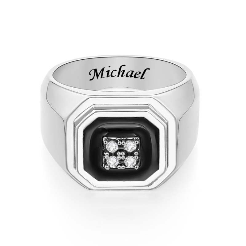 Questo esclusivo anello inciso da uomo non è solo un accessorio elegante ma anche un'espressione personalizzata.