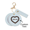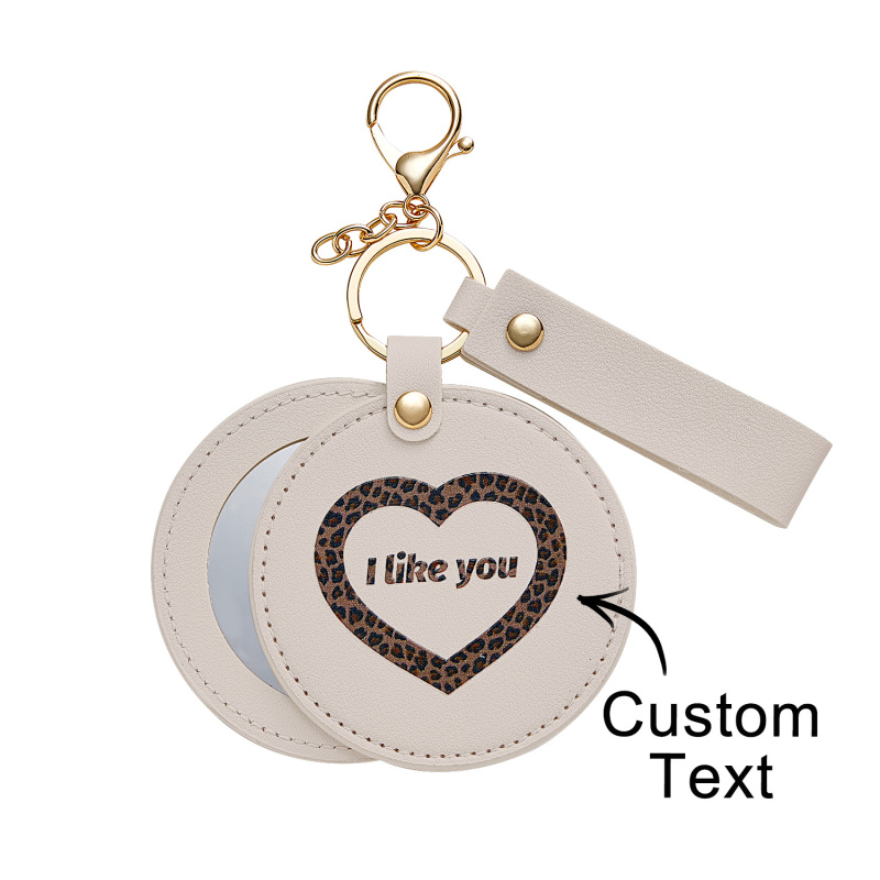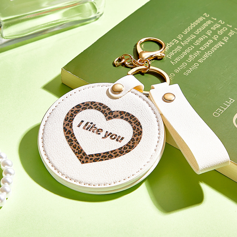 Celebra l'amore e crea ricordi indelebili con il nostro specchio da trucco in pelle con portachiavi inciso! Realizzato con cura meticolosa, questo esclusivo portachiavi a specchio presenta un esterno in pelle liscia di alta qualità e un pratico specchio da trucco all'interno. Personalizzalo con un'incisione che ti piaccia, che si tratti di nomi, date o un messaggio speciale, rendendolo un regalo di anniversario indimenticabile. Compatto e portatile, è perfetto per i ritocchi in movimento, mentre il design a portachiavi lo rende sempre a portata di mano. Un mix di funzionalità e sentimentalismo, questo specchio inciso è un ricordo romantico che sarà custodito per gli anni a venire.