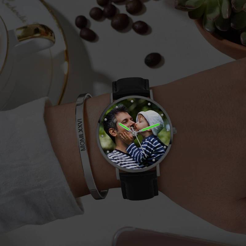 Sorprendi la persona amata con un orologio fotografico personalizzato con puntatore luminoso fatto su misura per adattarsi a qualsiasi personalità. L'immagine del design viene stampata direttamente all'interno della superficie dell'orologio. Un orologio fotografico personalizzato è sempre un grande regalo e non passerà mai di moda. Possiamo personalizzare il retro dell'orologio con un messaggio, accuratamente registrato, per sempre ricordare il tuo messaggio. Questo orologio è il nostro capolavoro di firma, la fusione perfetta di minimalismo e raffinatezza. Vestito su o giù, sicuramente segnerà l'aspetto e sarà un regalo perfetto per i tuoi cari, o anche un regalo per te! Soufeel ha molte opzioni di gioielli personalizzati a prezzi ragionevoli e sono regali eccellenti per tutti i tipi di occasioni, come compleanni, vacanze, anniversari, regali di compleanno per le madri. Orologio fotografico inciso con puntatore luminoso Cinturino in pelle nera 40 mm - Unisex.