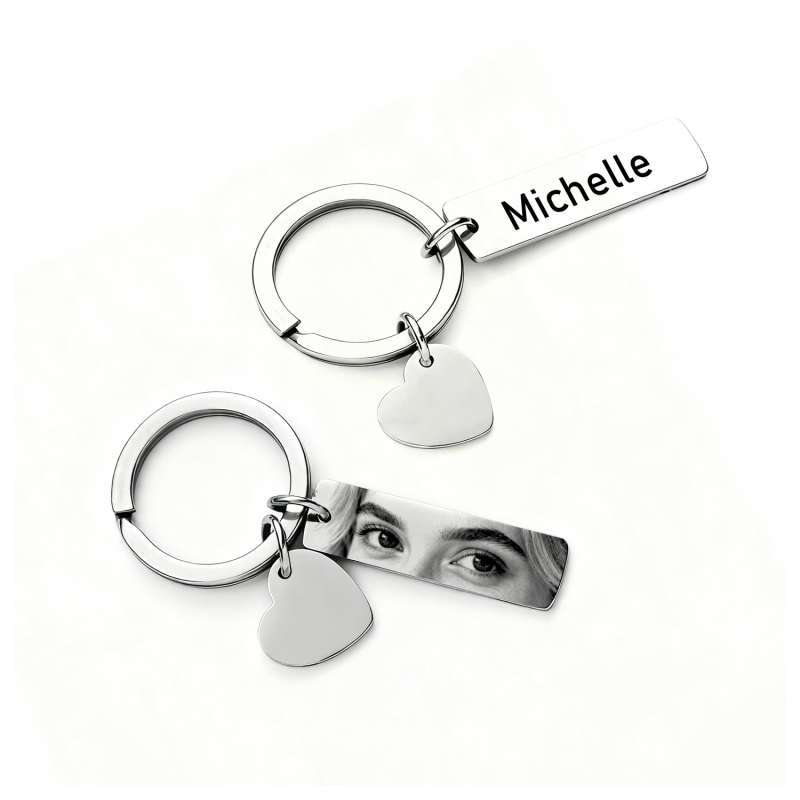 Portachiavi occhio con pendente a forma di cuore – incidibile, contiene foto, perfetto come miglior regalo per lei. Il design unico combina occhio e amp; elementi a cuore per un accessorio significativo.