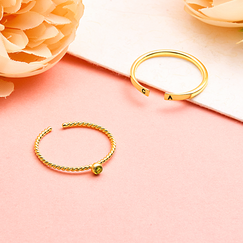 Set Di Anelli Con Iniziale Personalizzata, Regolabile, Riempito, Con Pietra Portafortuna Intrecciata, Due Anelli