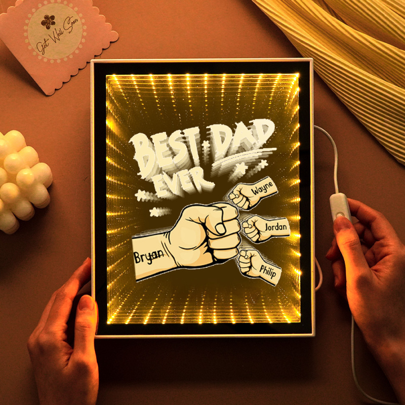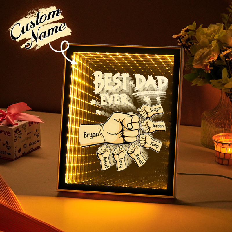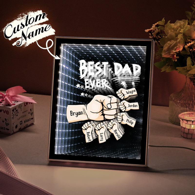 Luce Notturna Personalizzata Con Specchio A Forma Di Pugno, Nomi Personalizzati Per Bambini, Regali Per La Festa Del Papà