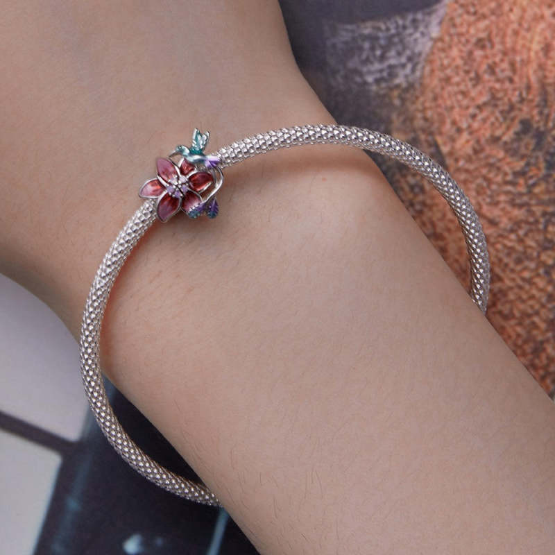 Charm Flores y Pájaros Esmaltados Plata