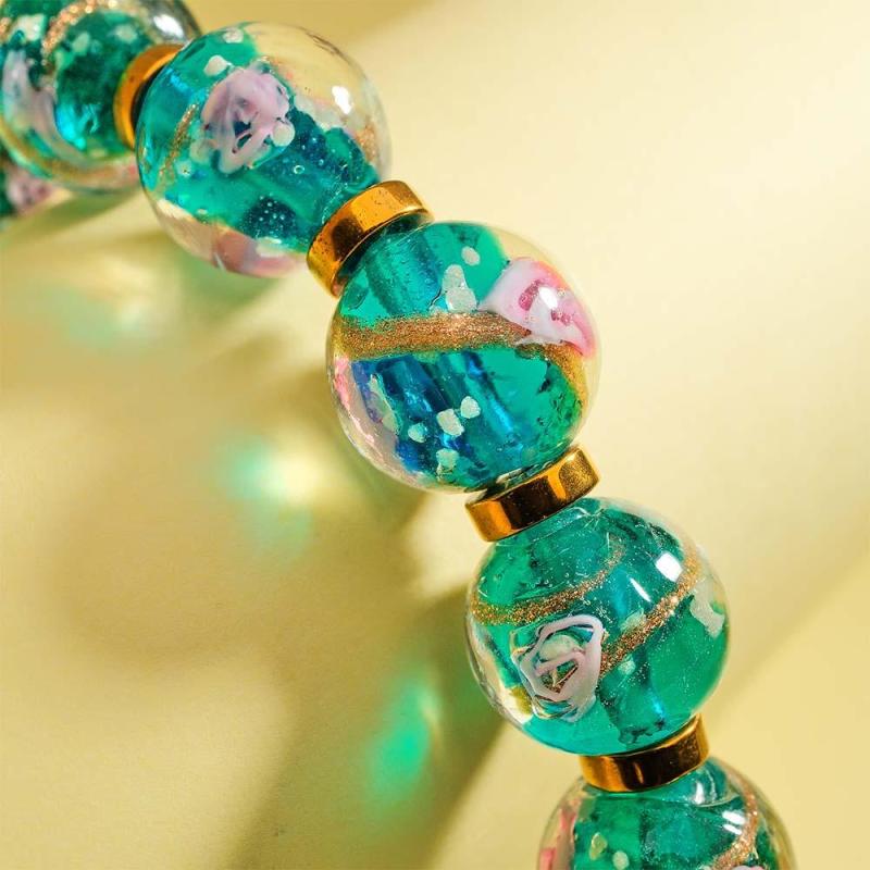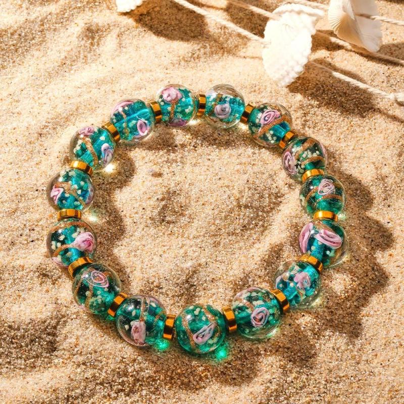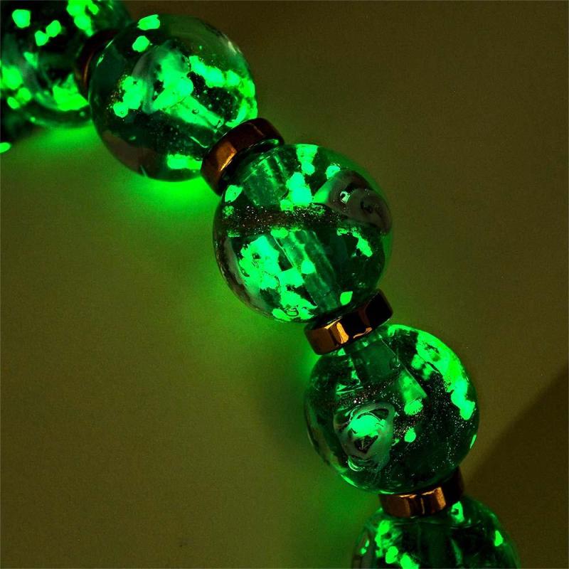 Bracciale Con Perline Elasticizzate In Vetro Blu Lucciola Fiorito. Bracciale Luminoso Che Si Illumina Al Buio