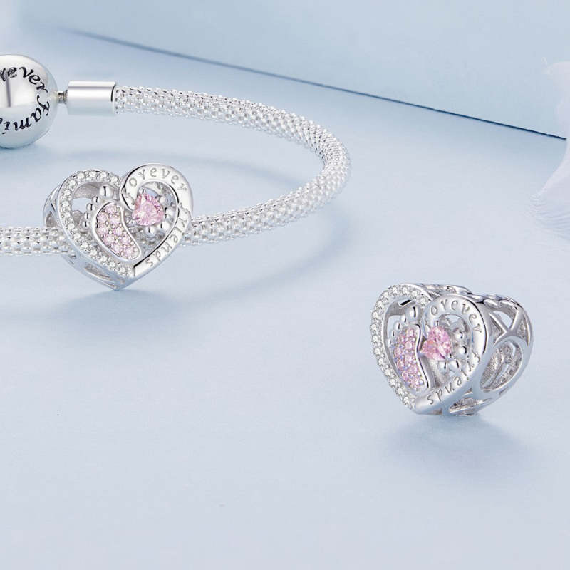 Charm con estampado de pata amigable para siempre amigo en plata