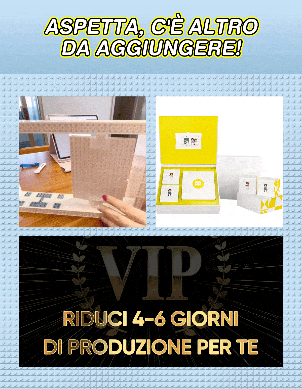 2. I prodotti personalizzati richiedono 2-5 giorni lavorativi per essere preparati prima della spedizione (varia in base alla categoria).