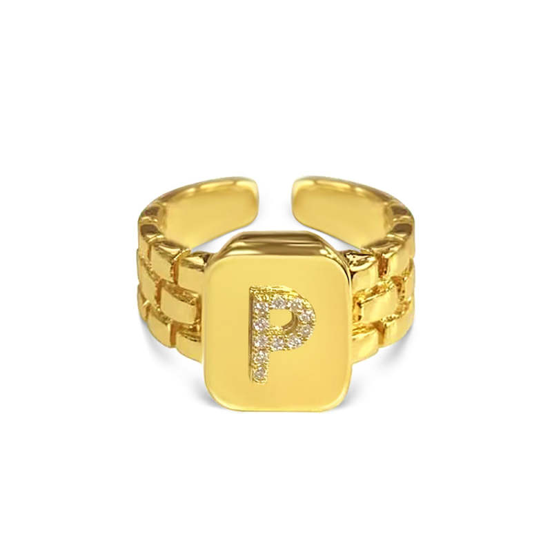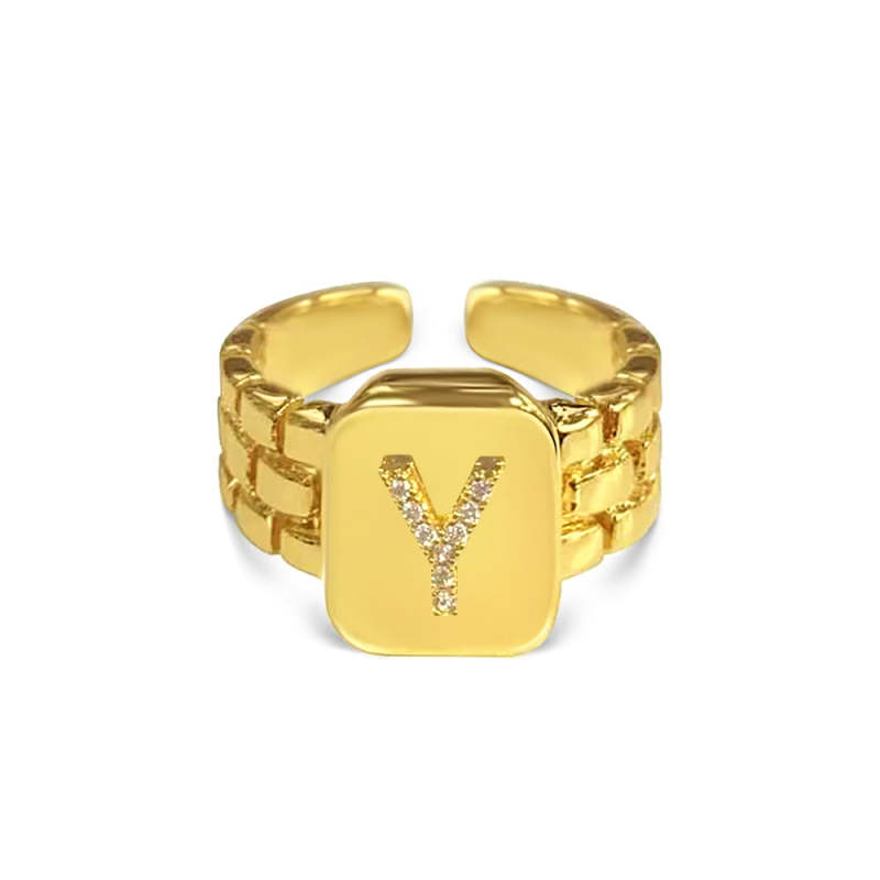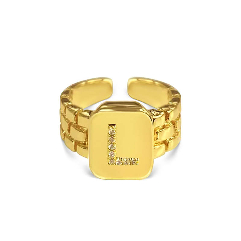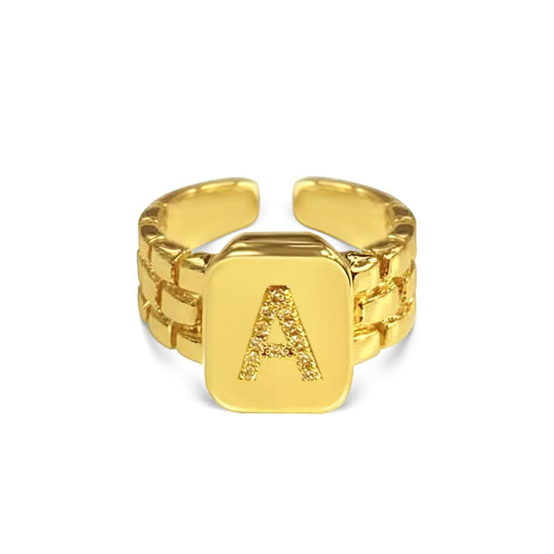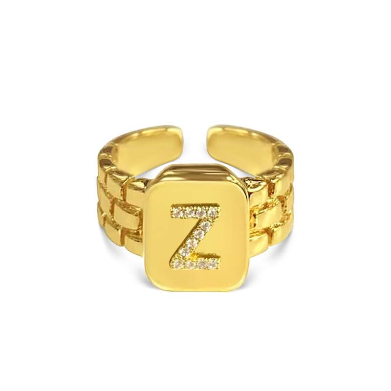 Anello Da Donna Con Lettera A-z In Zirconi Dorati