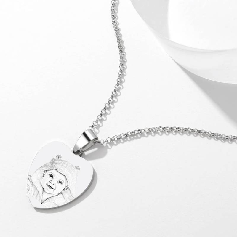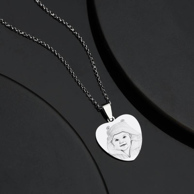 Da donna Collana Tag Della Foto Del Cuore Inciso Con Incisione In Acciaio Inox