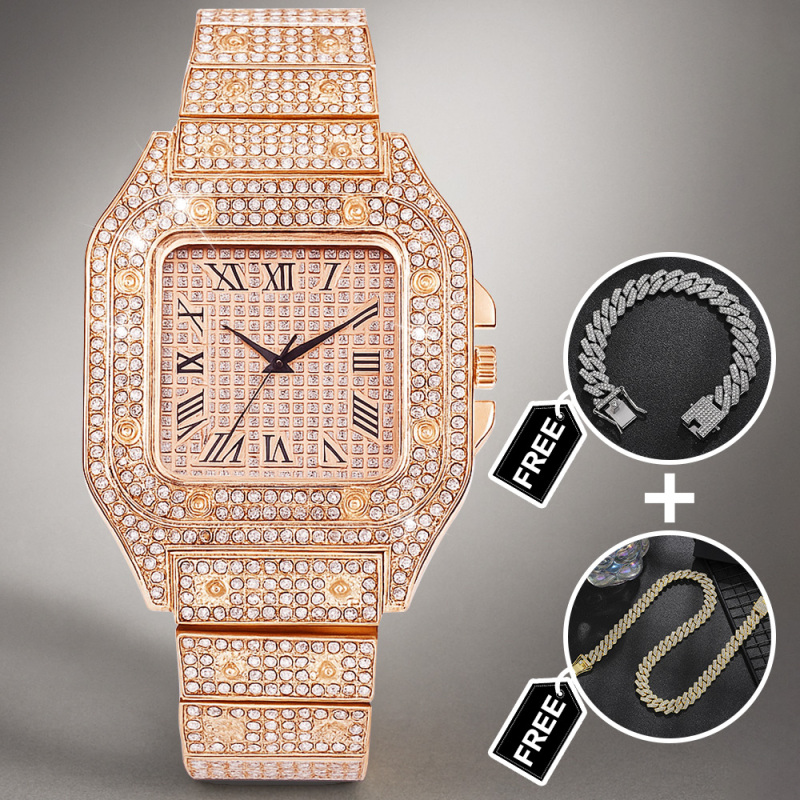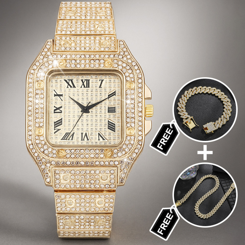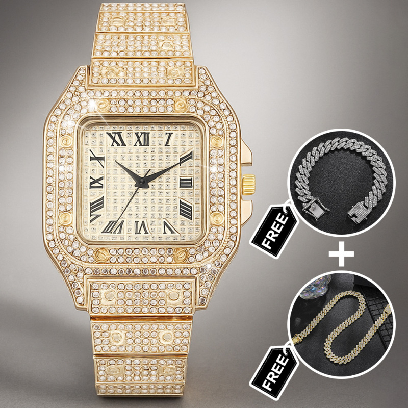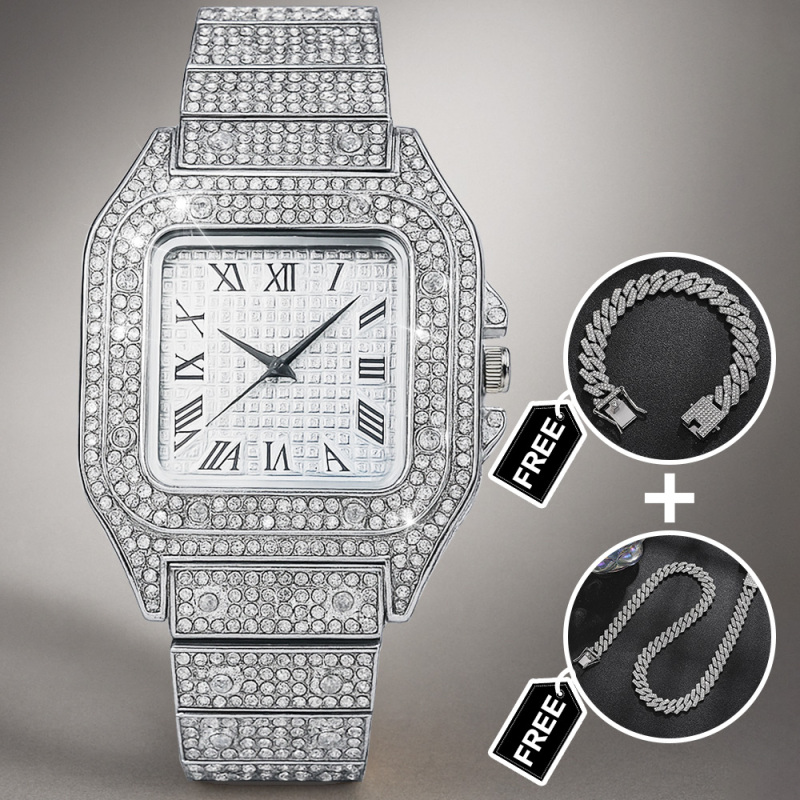 Eleva il suo stile con il nostro set di orologi con strass Iced Out, un set di tre accessori scintillanti pensato per fare colpo. Questo accattivante set regalo include un lussuoso orologio tempestato di strass, un bracciale abbinato e un'elegante collana, tutti realizzati per brillare da ogni angolazione. Perfetto per compleanni, anniversari, matrimoni o qualsiasi occasione speciale, questo set aggiunge un tocco di glamour e modernità a qualsiasi outfit. La struttura resistente, le chiusure sicure e la vestibilità comoda garantiscono una vestibilità perfetta per tutto il giorno. Regalagli un regalo straordinario che unisce raffinatezza e un tocco di brillantezza: il set di orologi Iced Out è pronto a stupire.