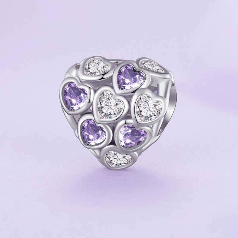 Charm Infinito Amor Circonita Morada Y Blanca Plata