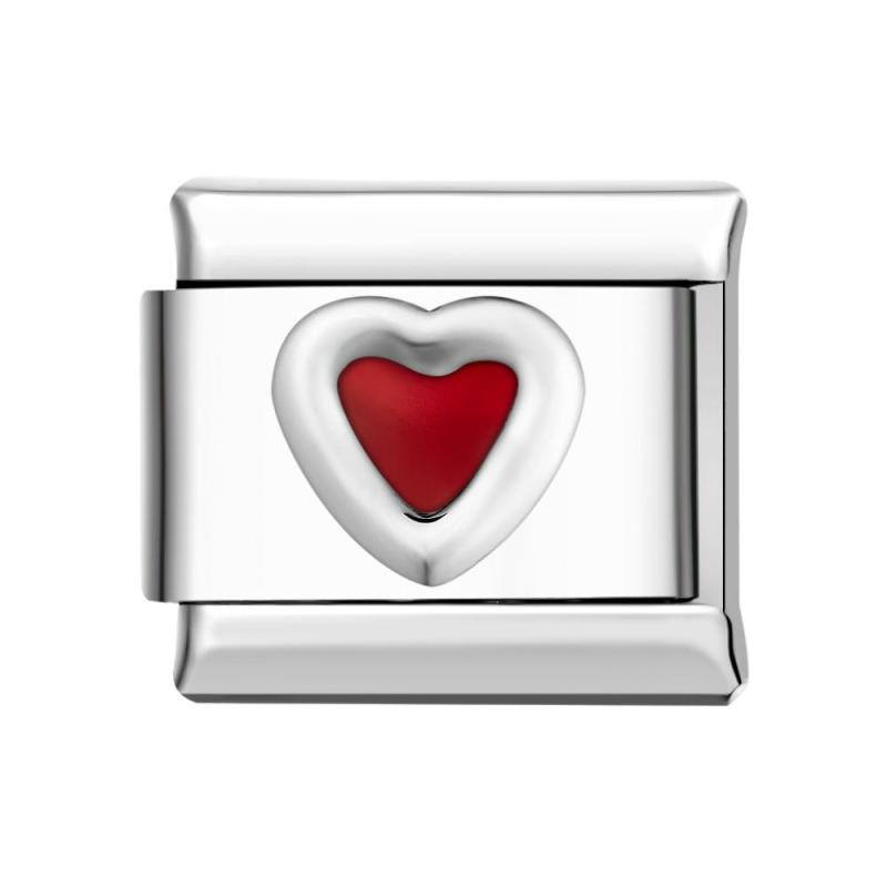 Cuore D'amore - Charm Italiano Rosso Per Braccialetti Con Charm Italiani Link Composable