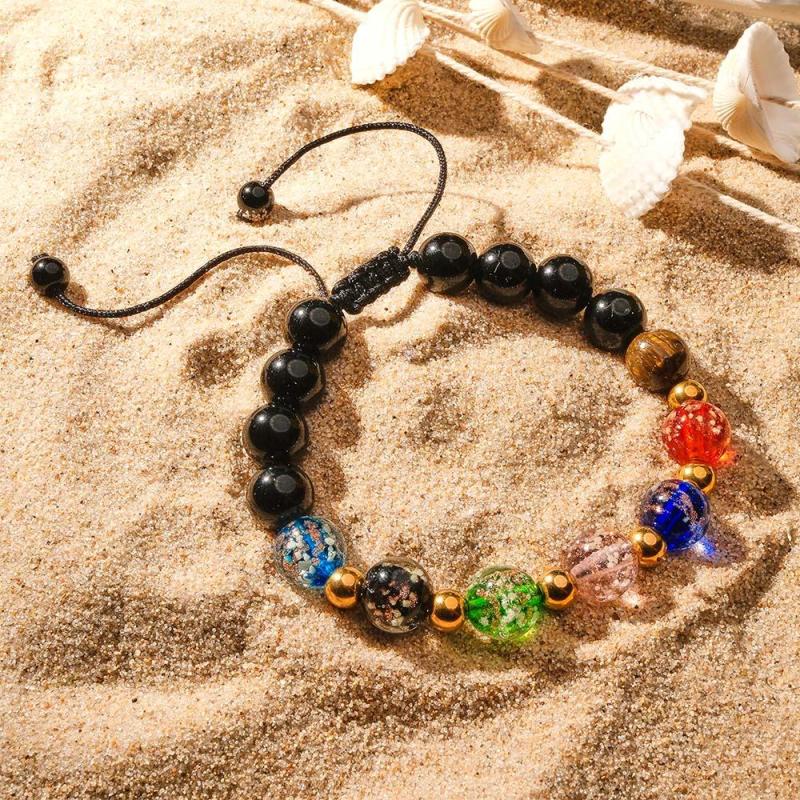 Bracciale Intrecciato In Vetro Lucciola A Sei Colori Con Perline Dorate Luminose Bracciale Luminoso Che Si Illumina Al Buio