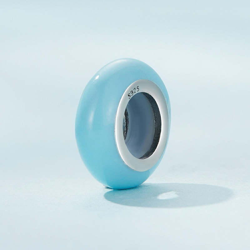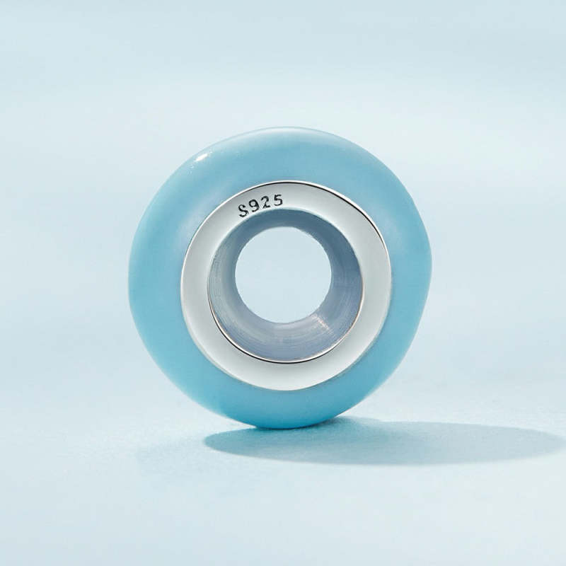 Macaron Ciondolo Tappo Ciano Ciondolo Distanziatore Argento