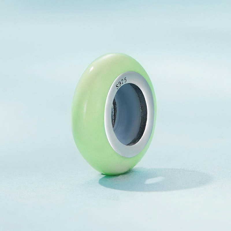 Ciondolo Distanziatore Con Tappo Verde Chiaro Macaron, Argento