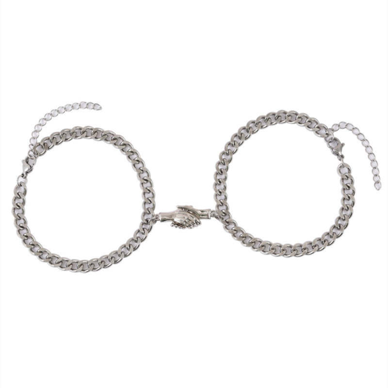 Venduto con un paio di delicati magneti a forma di stretta di mano che mostrano attrazione reciproca quando ci si avvicina. Questi braccialetti per coppie simboleggiano l'amore eterno e l'amicizia tra amanti o amici. Questo braccialetto a cuore abbinato per le coppie è dotato di una fascia regolabile che consente a chi lo indossa di creare la vestibilità perfetta per loro. Il cinturino è robusto, resistente allo sporco e facile da abbinare. Adatto ad ogni occasione.