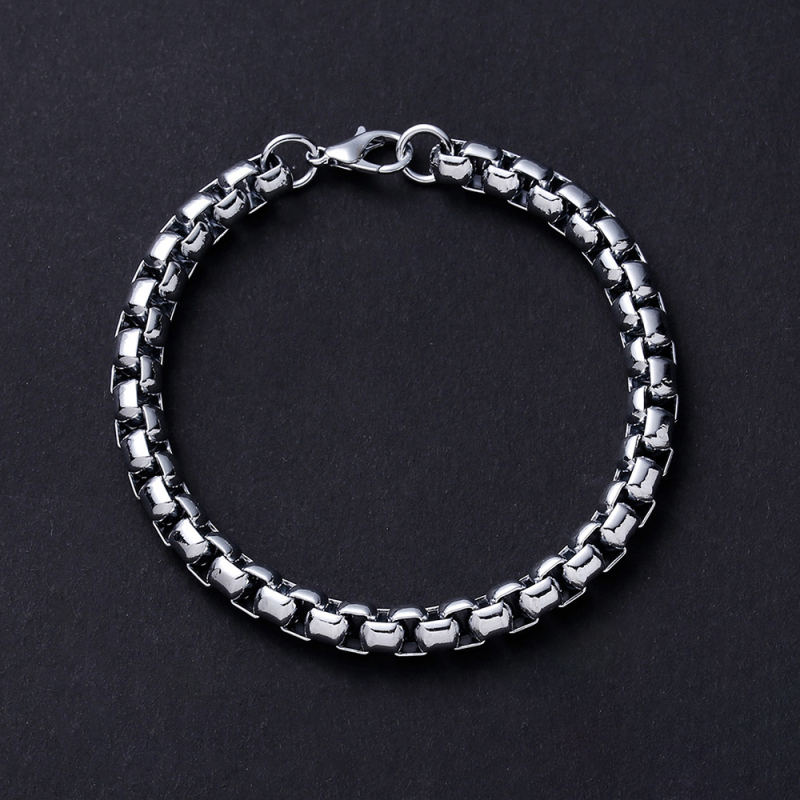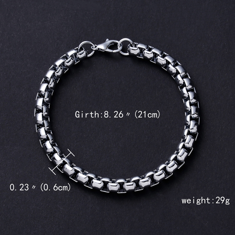 Bracciale Da Uomo Punk Con Catena A Scatola Arrotondata, Catena Spessa, Regalo Per Il Fidanzato