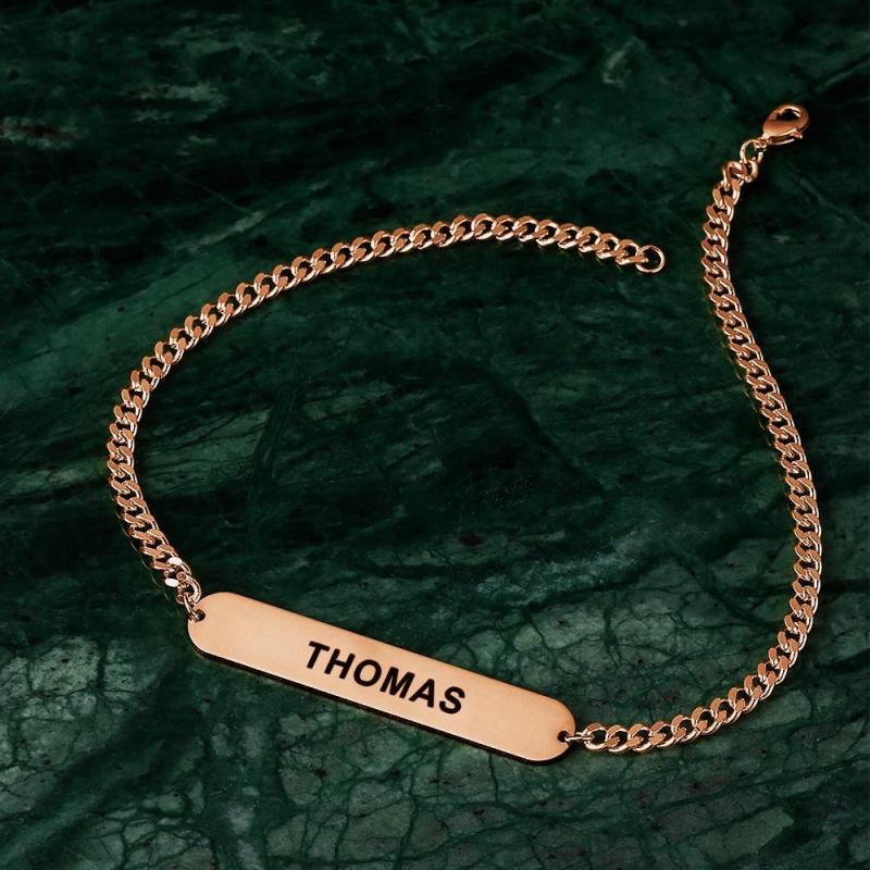 Questo bellissimo bracciale può essere personalizzato con nomi, iniziali, date, frasi, numeri romani o coordinate. Inciso con date o coordinate è un regalo molto popolare per le damigelle, personalizzato con nomi di bambini o nipoti perfetto regalo di Natale per tuo marito, ragazzo. Bracciale da uomo Bracciale a catena spessa Bracciale con nome personalizzato Bracciale regalo per coppie - Oro rosa