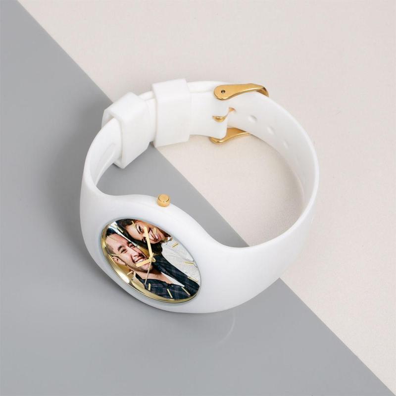 Silicone Mens Watch Registrabile Con Photo 41mm White Bracelet