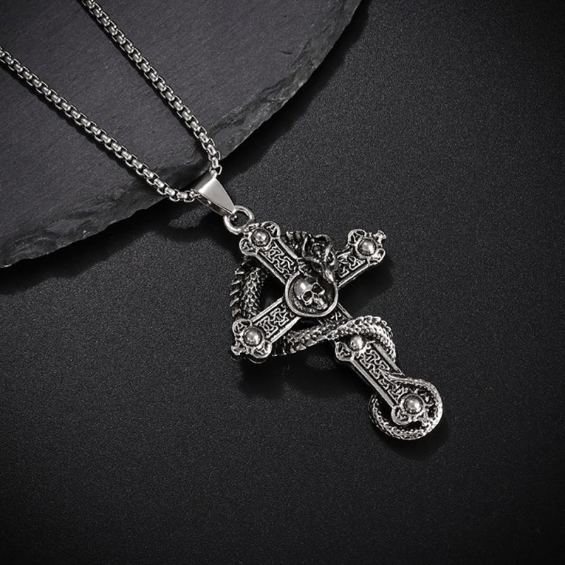 Collana Da Uomo Collana Punk Collana Con Ciondolo Croce Di Pandragone Con Teschio Regalo Per Fidanzato