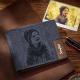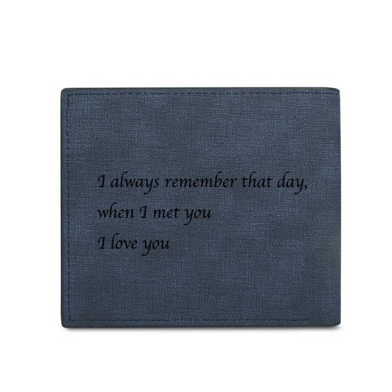 Engravable Portafoto Fotografico Inciso Da Uomo Bifold - Pelle Blu