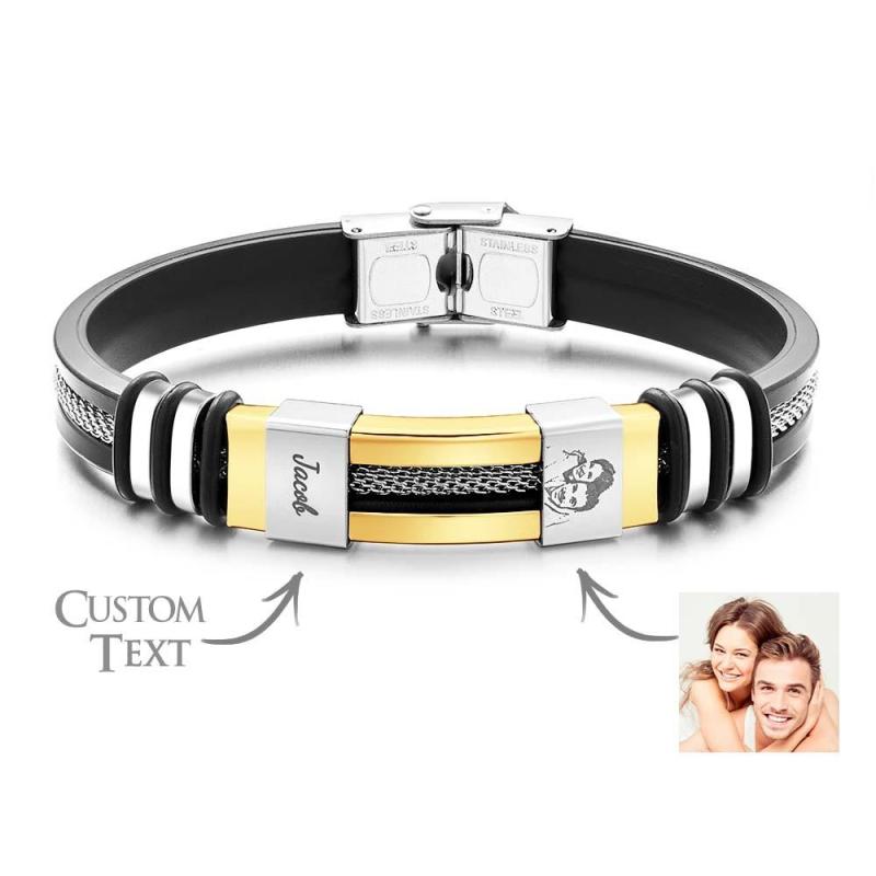 Il bracciale ha un design semplice ed elegante, la combinazione di nero e argento ha un aspetto sobrio e lussuoso, elegantemente signorile. Realizzato in acciaio inossidabile di alta qualità e morbido silicone, è durevole, non tossico e innocuo, confortevole da indossare.Il bracciale da uomo è adatto a molte occasioni, come il lavoro, la vita quotidiana, le occasioni formali o le attività all'aperto.