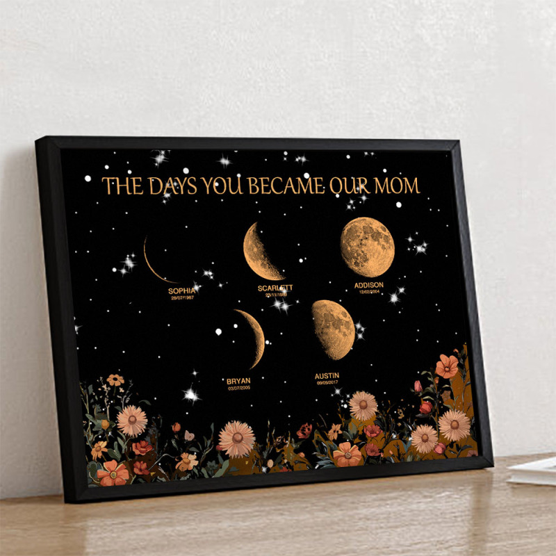 Regalo Per La Festa Della Mamma Con Cornice In Legno Con Fasi Lunari E Nomi Personalizzati Con Il Tuo Testo