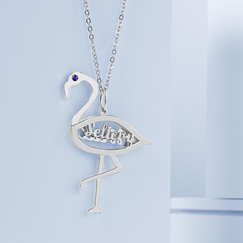 Collana Con Nome Con Pietra Portafortuna Collana Con Ciondolo Fenicottero Regali Unici In Argento