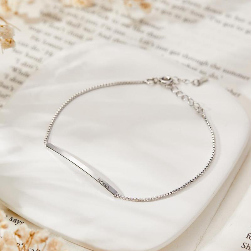 Il sempre popolare braccialetto a barra curva e sottile Incidi un messaggio segreto sul braccialetto a barra, una citazione sentimentale o i nomi, le iniziali o le date dei tuoi cari. Un bellissimo braccialetto a barra delicato, perfetto per ogni occasione speciale. Segna la tua amicizia con un regalo quotidiano ma speciale. Un modo elegante per tenere i tuoi fratelli vicino a te. Rendi il nostro delicato braccialetto il regalo perfetto per compleanni, anniversari, festa della mamma o altro ancora.