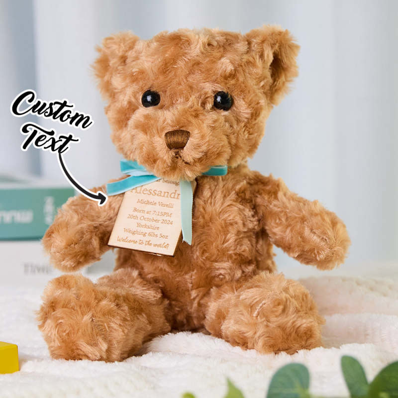 Vi presentiamo il nostro peluche personalizzato con statistiche di nascita dell'orso, il regalo perfetto per annunciare l'arrivo di un nuovo fascio di gioia. Realizzato con materiale morbido e coccoloso, questo adorabile orsetto può essere personalizzato con le statistiche di nascita del neonato. Questo è un modo unico e premuroso per celebrare e apprezzare questo momento speciale.