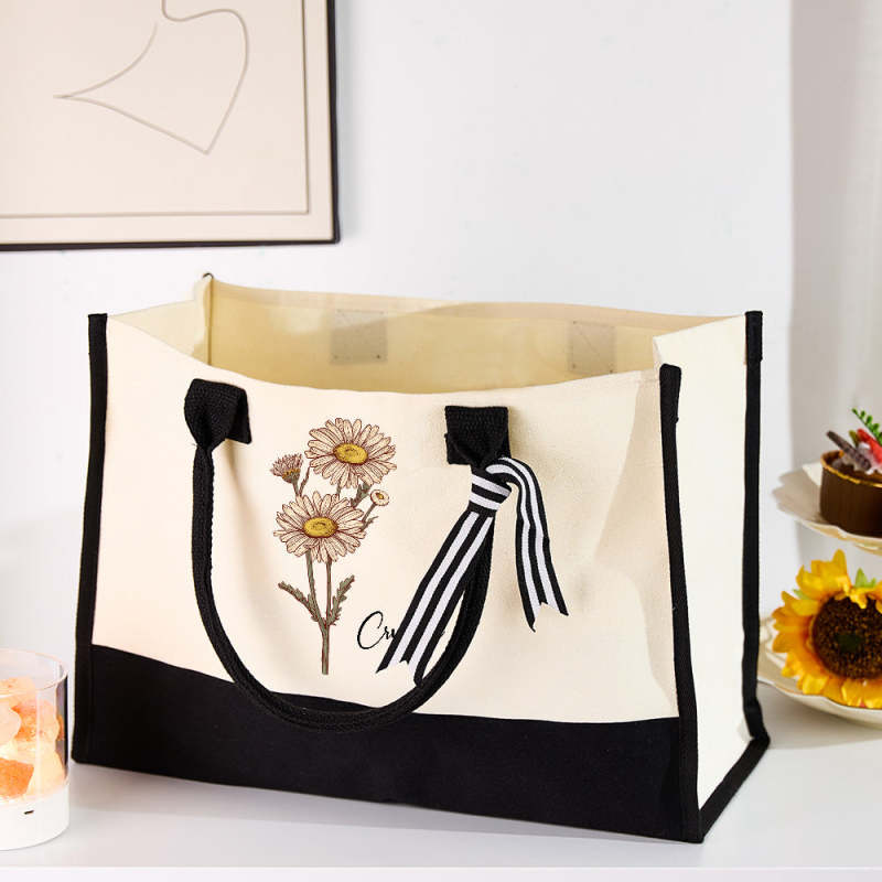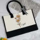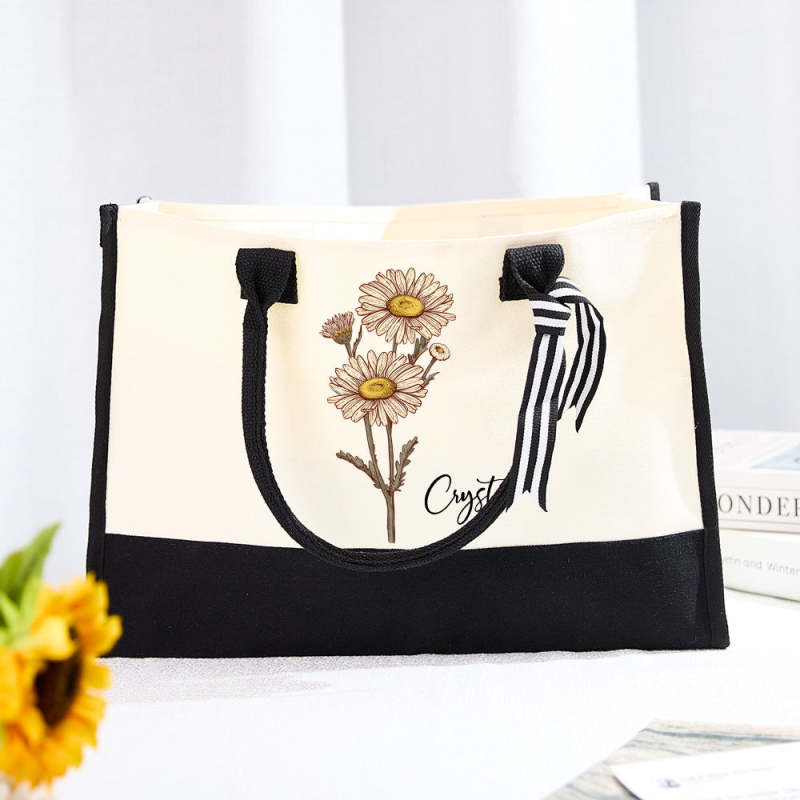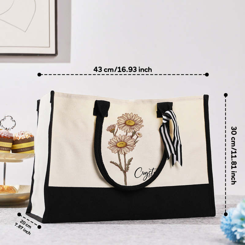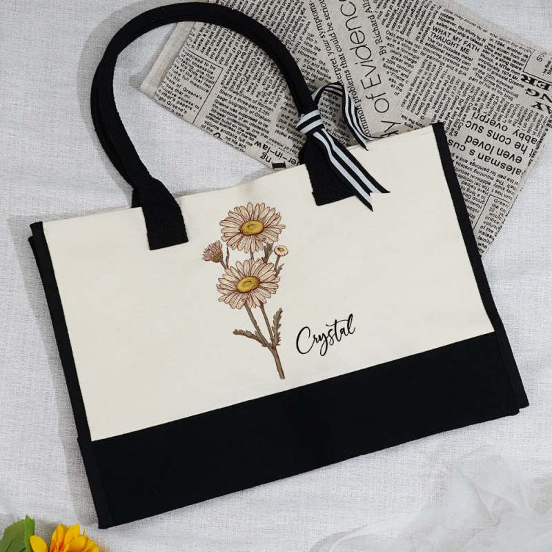 Borsa Da Spiaggia In Tela Con Fiori Di Nascita Personalizzata, Borsa Da Spiaggia Di Grande Capacità, Regalo Per Lei