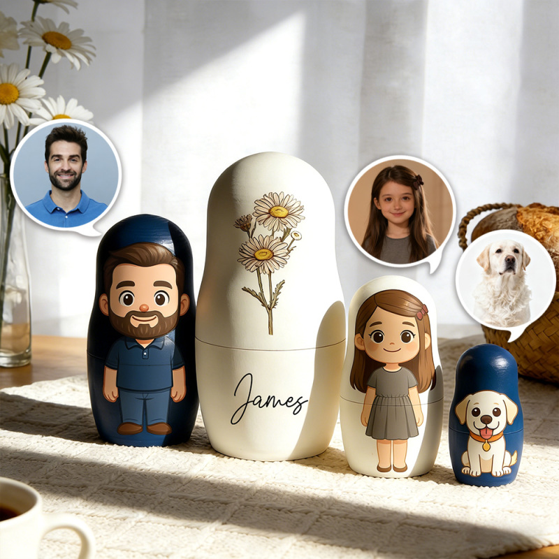 Ritratto Di Fiore Di Nascita Personalizzato, Bambola Nidificante, Ritratto Personalizzato Con Nome, Stile Cartone Animato, Regalo Di Compleanno
