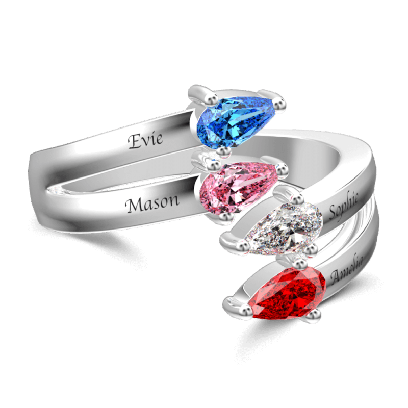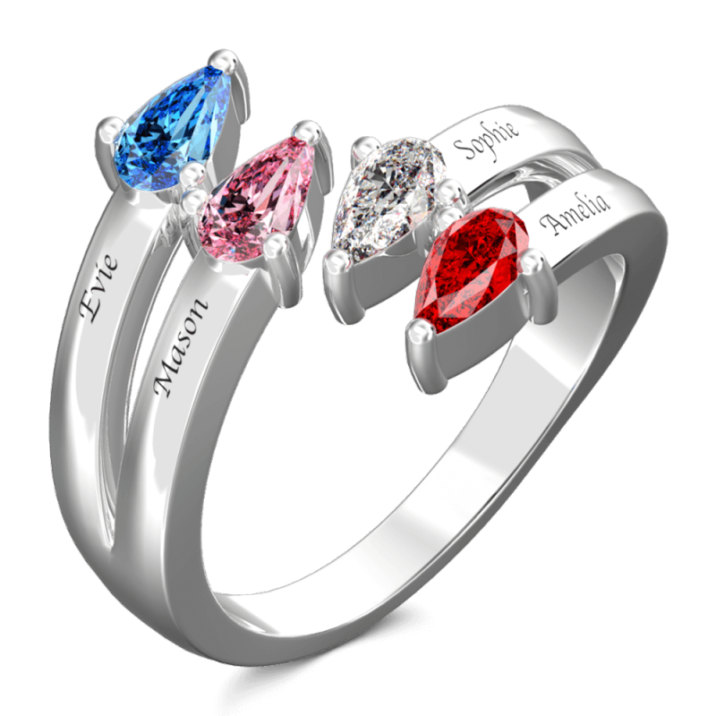 Anello Personalizzato Birthstone Promise Con Incisione In Argento