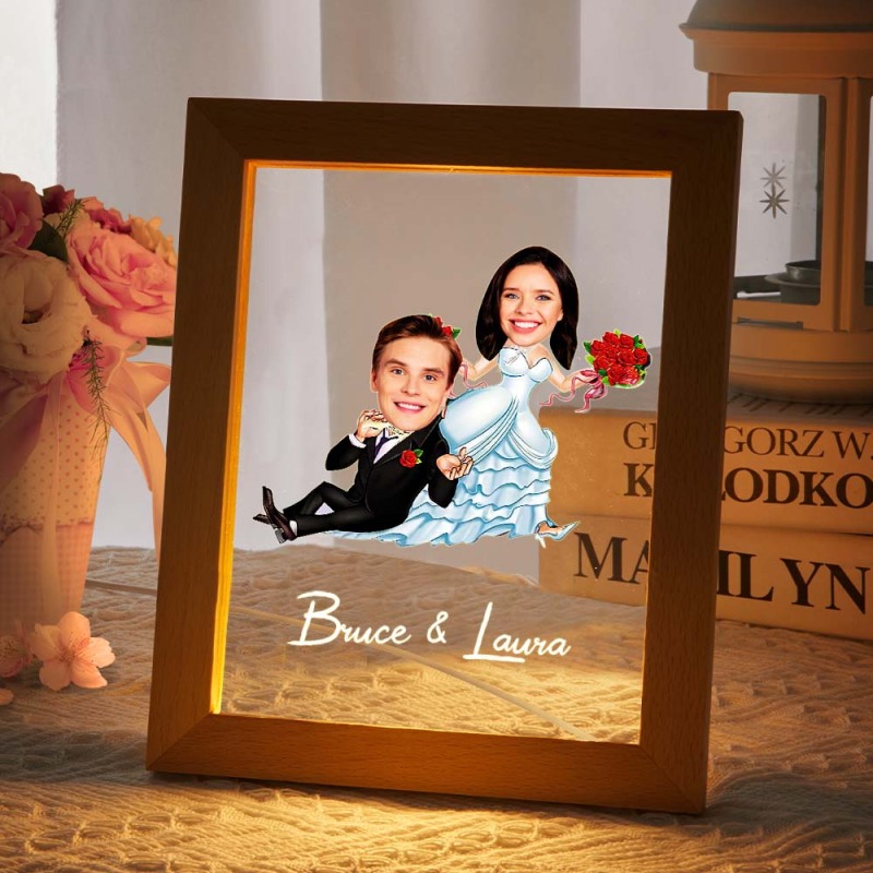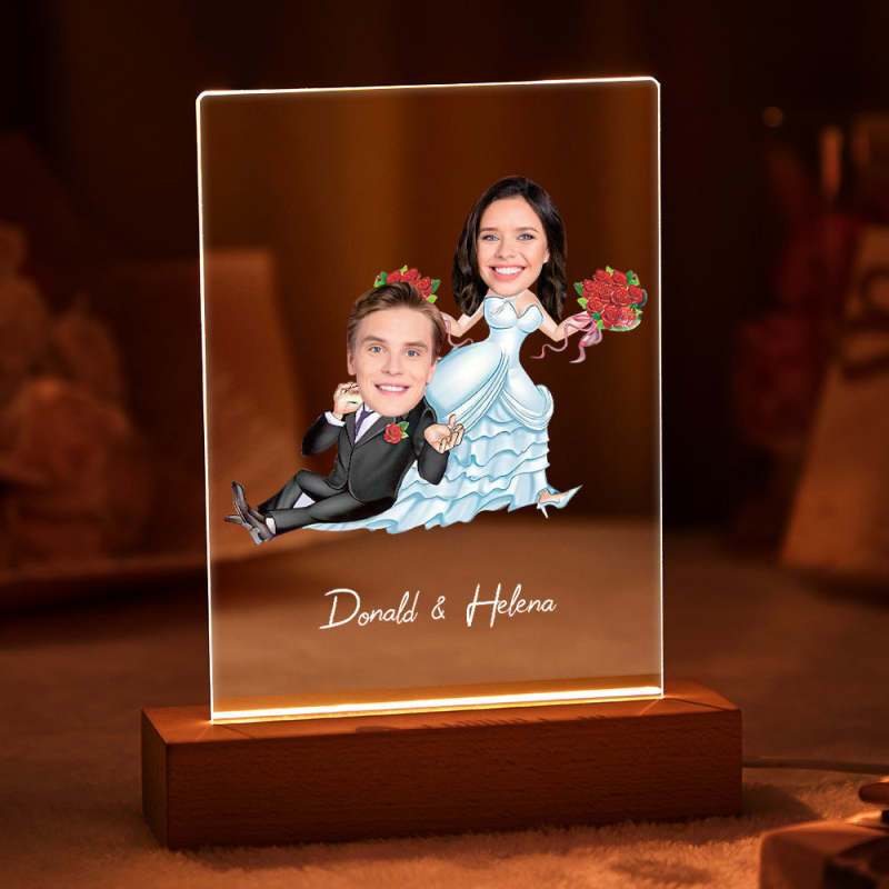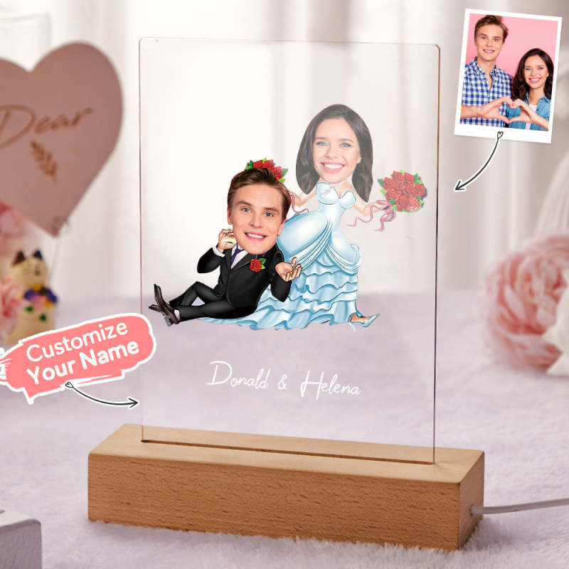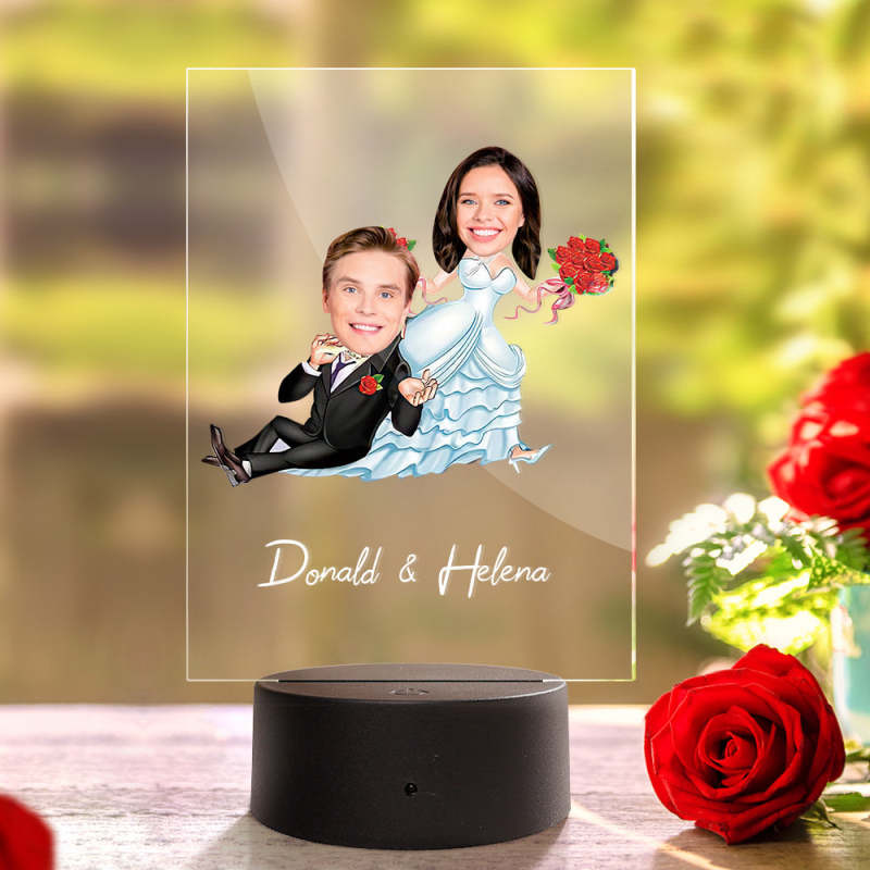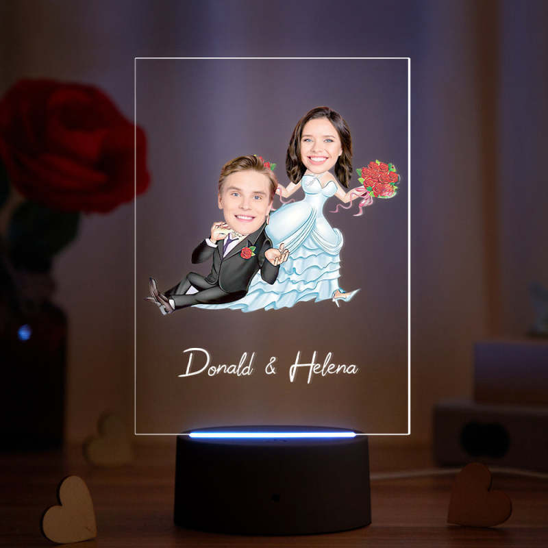 Foto Di Coppia Personalizzata E Nome Lampada A Led In Acrilico Base In Legno Lampada Personalizzata